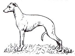 TAIL - No feathering. Long, tapering, when in action carried in a delicate curve upward but not over back.